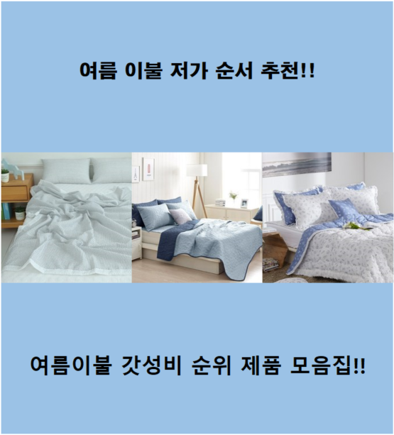 이렇게 여름 이불 가성비 순위를 알아봤습니다. *^____^*